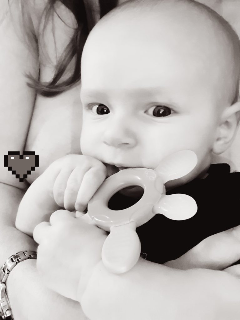 Ou qu’il saisit de lui-même les pétales de son jouet de dentition (merci Axel) !